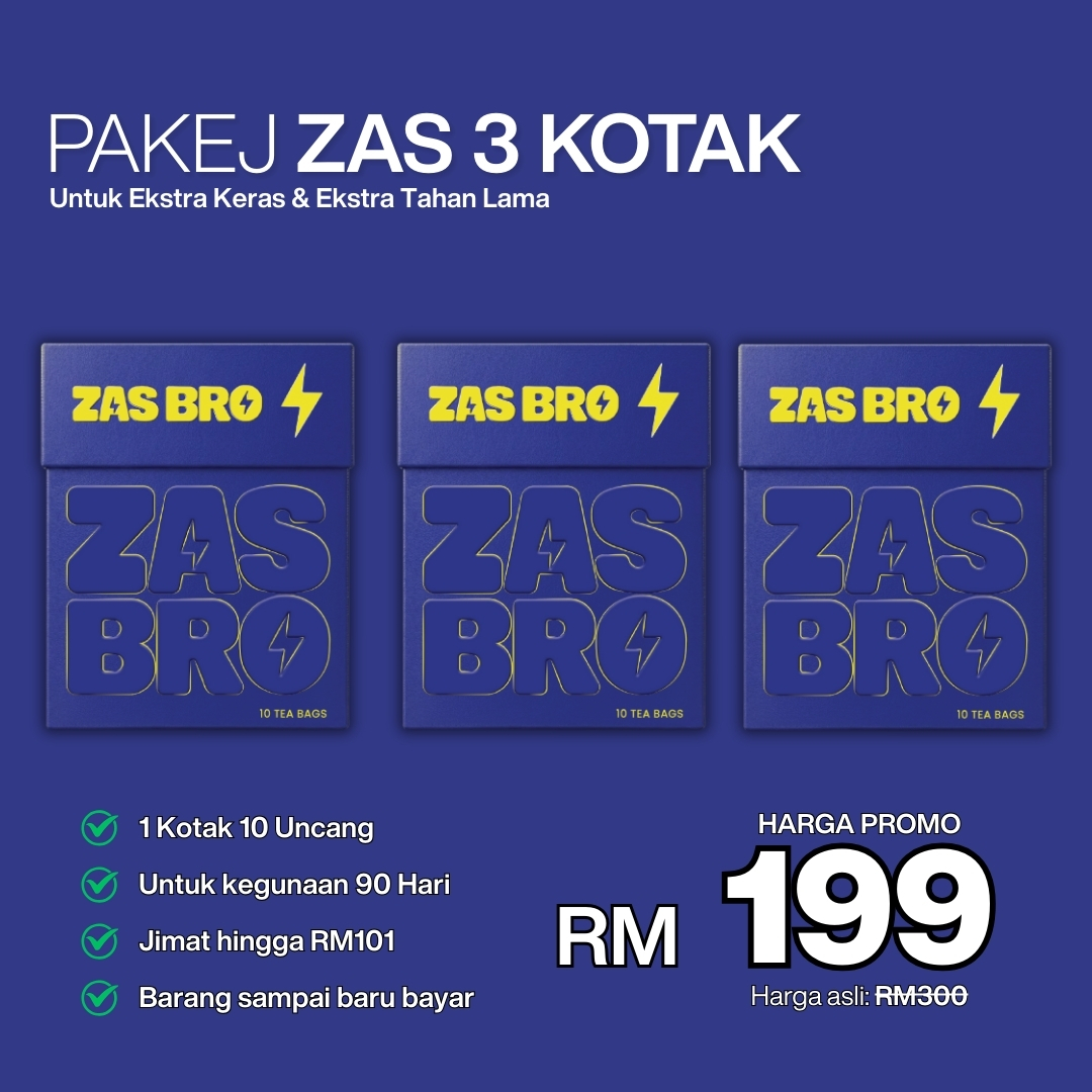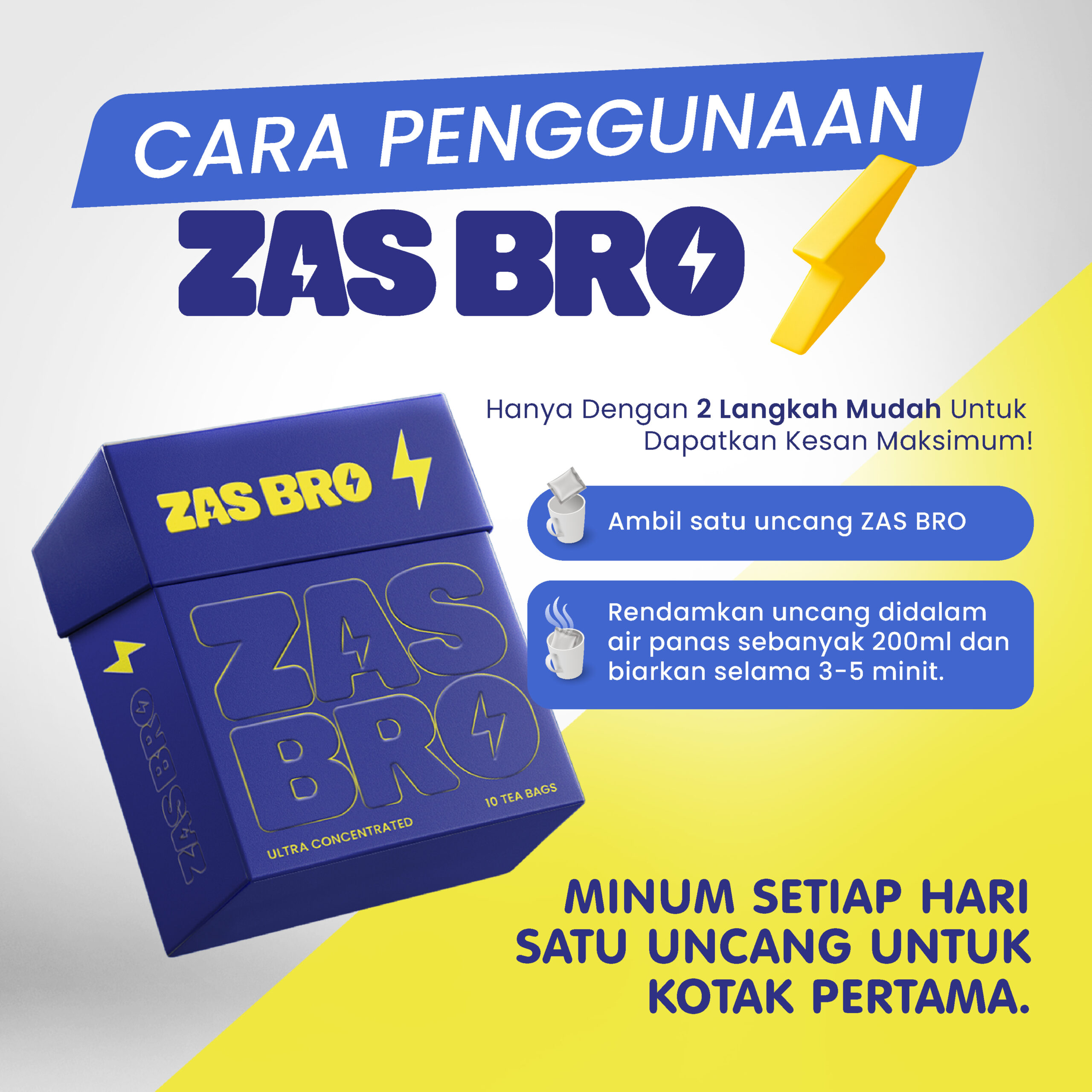 ZAS BRO ialah Teh Herba lelaki berformula kuat yang direka untuk lelaki yang mula hilang tenaga, fokus dan “drive”.